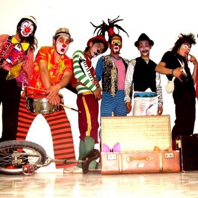 Compuesta por un número de 6 a 9 artistas de nuestra compañía clown, entre los que se destacan dos músicos y representantes de las más vistosas disciplinas circenses como rola, jirafas, contac, clavas (de luz, antorchas, machetes, sombreros), pulsadas...